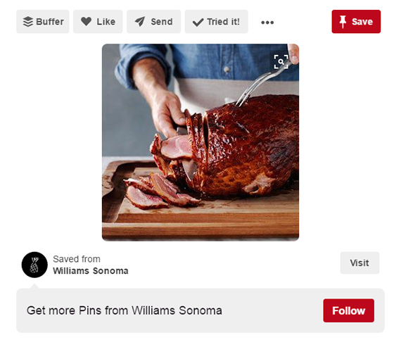 Williams-Sonoma’s marketing team might be wise to promote this pin around Easter and Christmas or, perhaps, buy pay-per-click ads for the keyword phrase on Google and Bing.