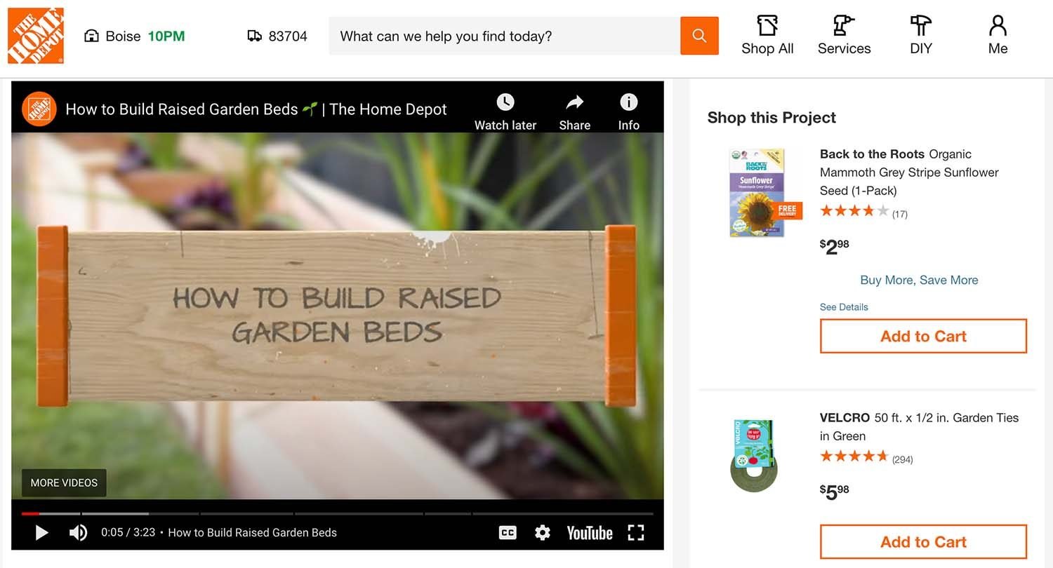 Consider The Home Depot. The company’s ecommerce site has a do-it-yourself project section, complete with video tutorials explaining a project and the products. Examples include the building of garden beds, playground equipment, and more.