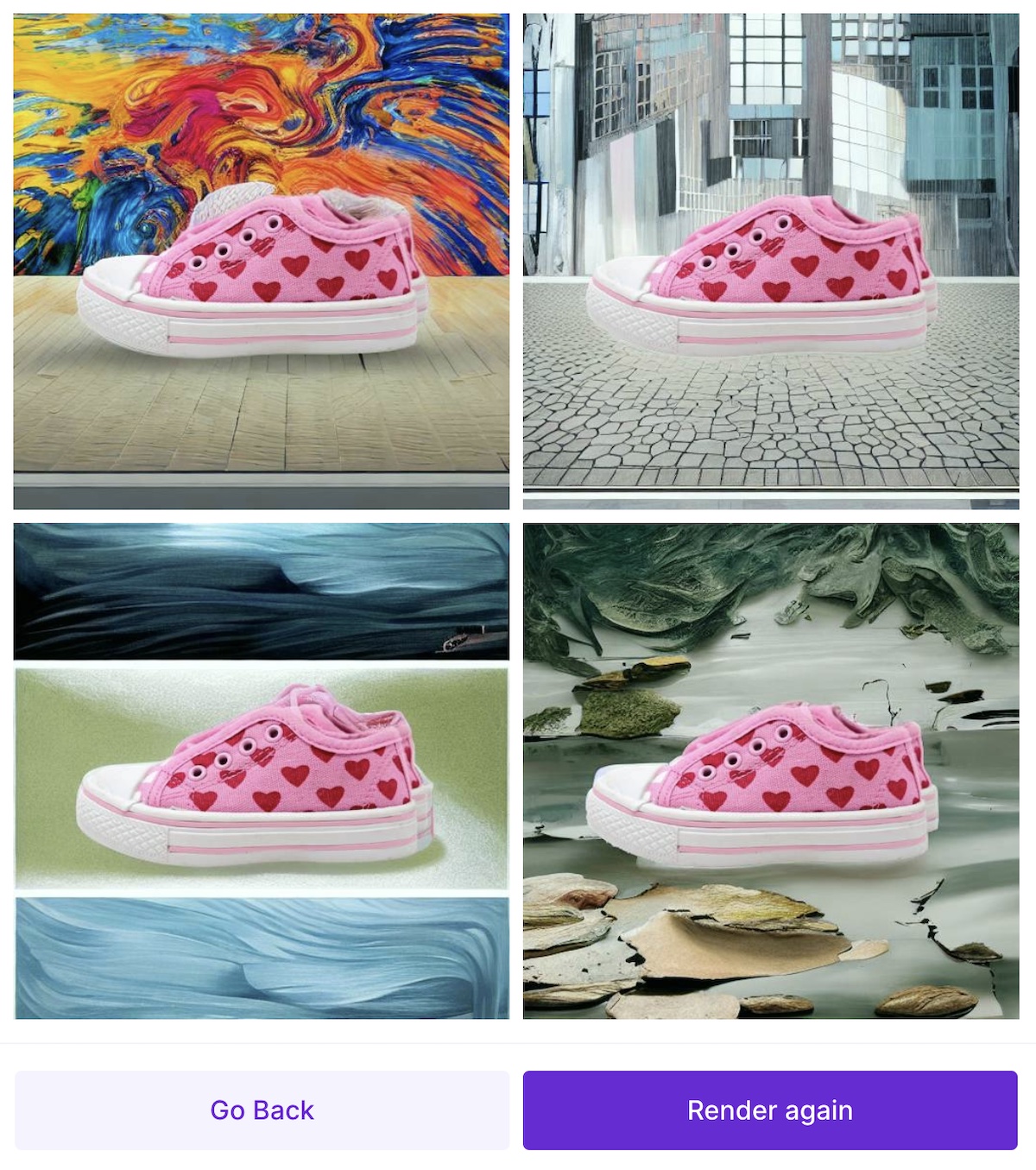 Pebblely generates images based on an uploaded photo and the chosen category. Click image to enlarge.