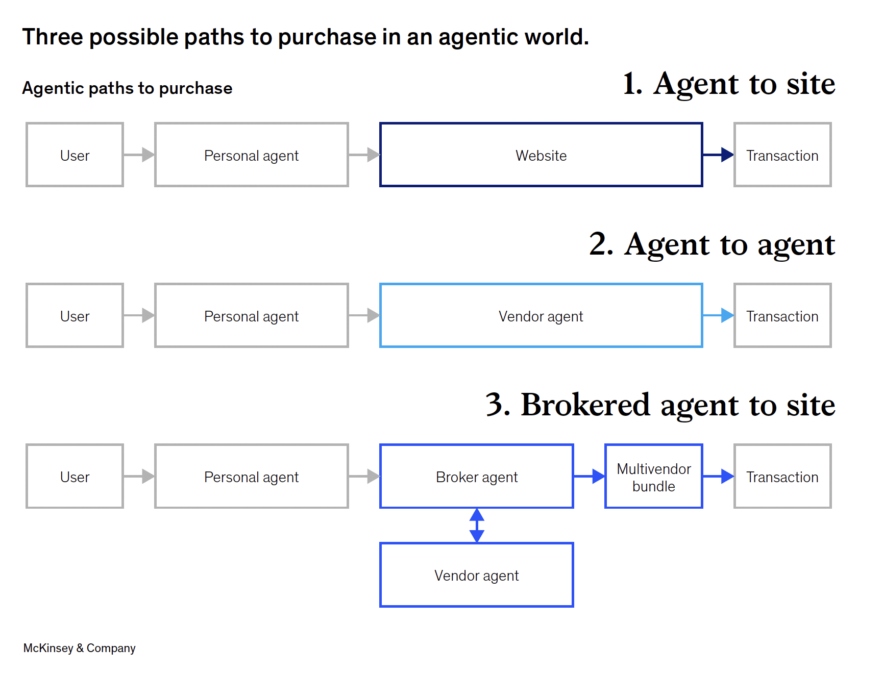 A just-released McKinsey & Company report, “The agentic commerce opportunity,” described three possible shopping flows.