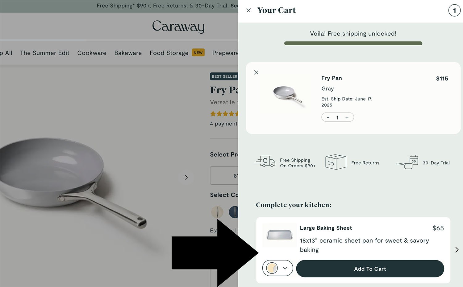 Kitchenware brand Caraway includes a content slider with several related products at the bottom of its checkout.