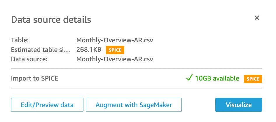 It is worth mentioning that QuickSight can load data into server memory — using what it calls “Super-fast, Parallel, In-memory Calculation Engine” or SPICE — for fast data computations. The feature is more important for direct connections.