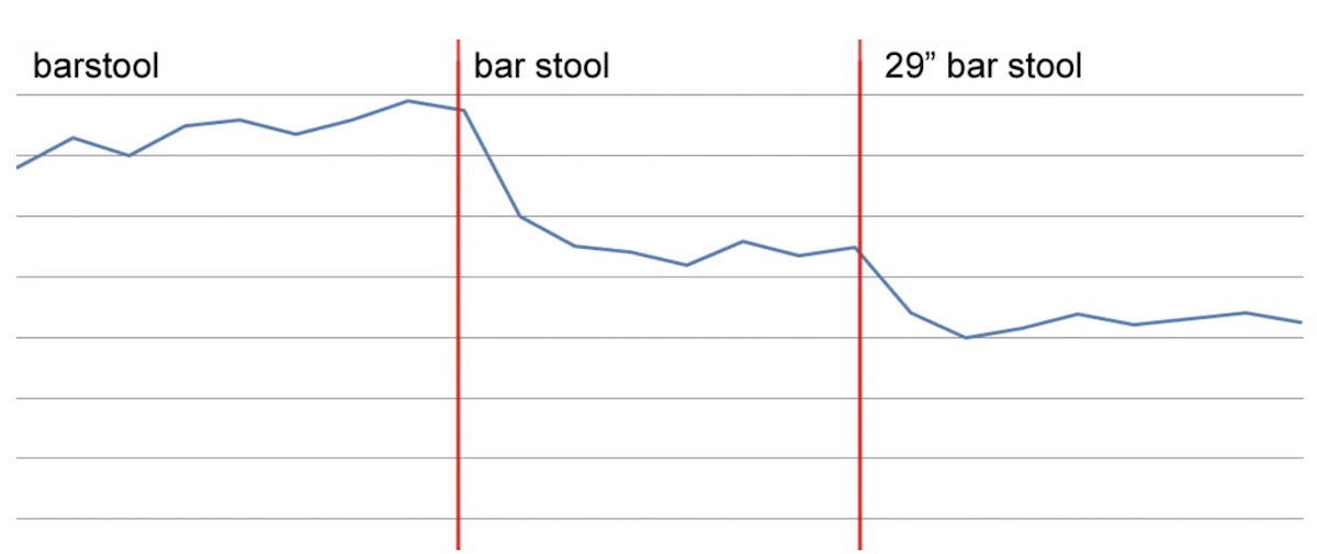 Moz’s study redirected a page from /barstool.html to /bar-tool.html to /29-inch-bar-stool.html. The result was a consistent loss of organic traffic.