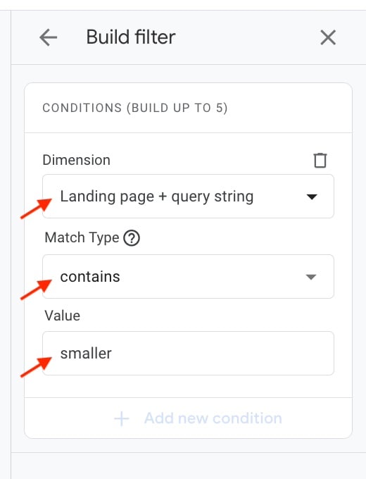 Limit the acquisition reports to a single page, such as this example for a URL containing “smaller.” Click image to enlarge.
