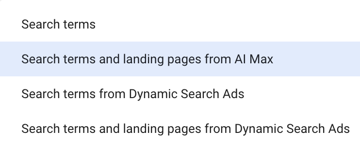 Advertisers can view the AI Max search terms and associated landing pages in the search terms report.