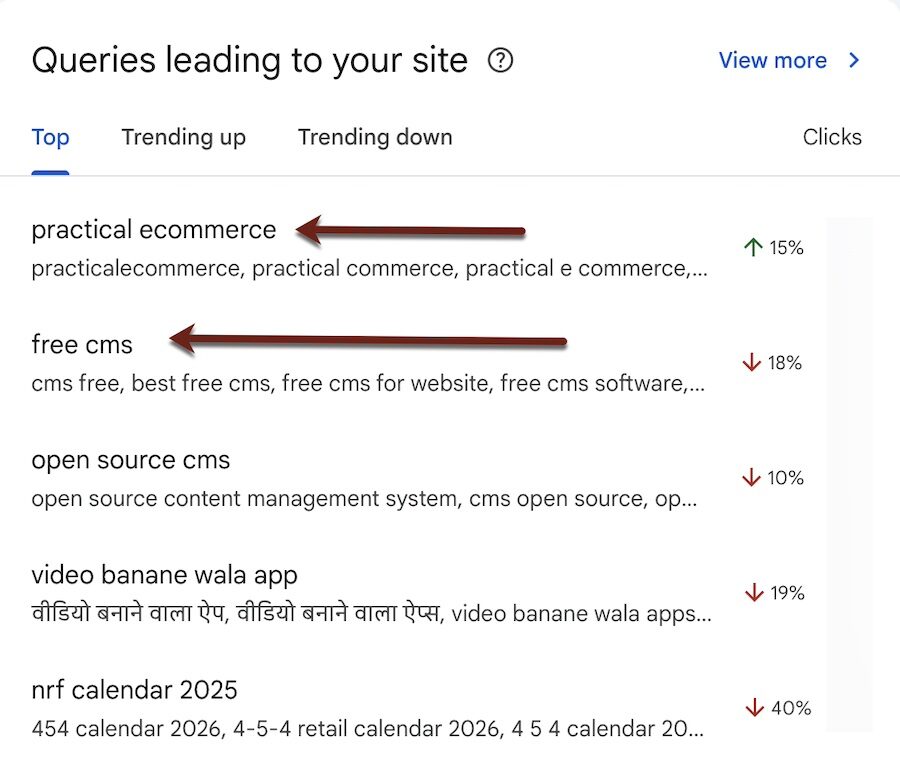Google Search Console’s “Insights” section no longer shows click trends for individual keywords. It now displays trends for keyword groups, once available only to high-traffic sites.