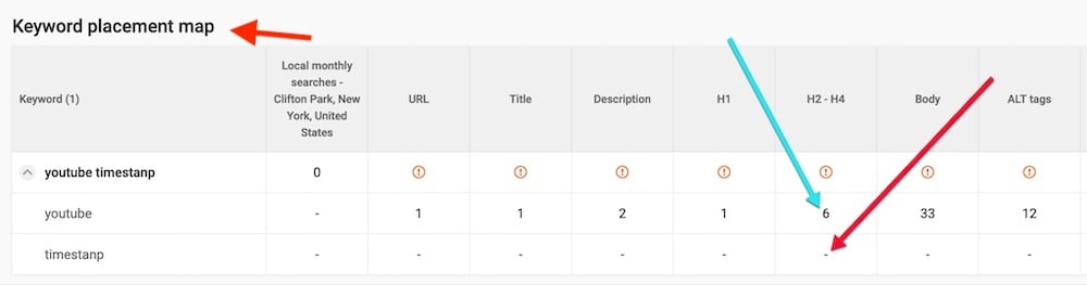 - The primary and secondary keywords.