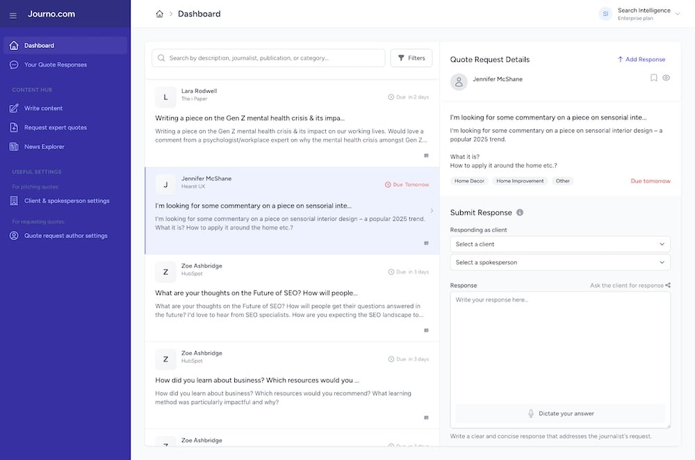 Journo.com is a freemium platform connecting reporters with expert sources. Reporters can submit quote requests without creating an account.
