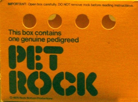 By 1975, consumers could purchase a pet rock in many stores. Dahl marketed the stones as live animals, placing them in a perforated cardboard box. I had one —my dad mumbled under his breath all the way to the checkout stand.