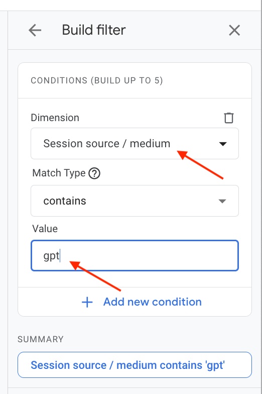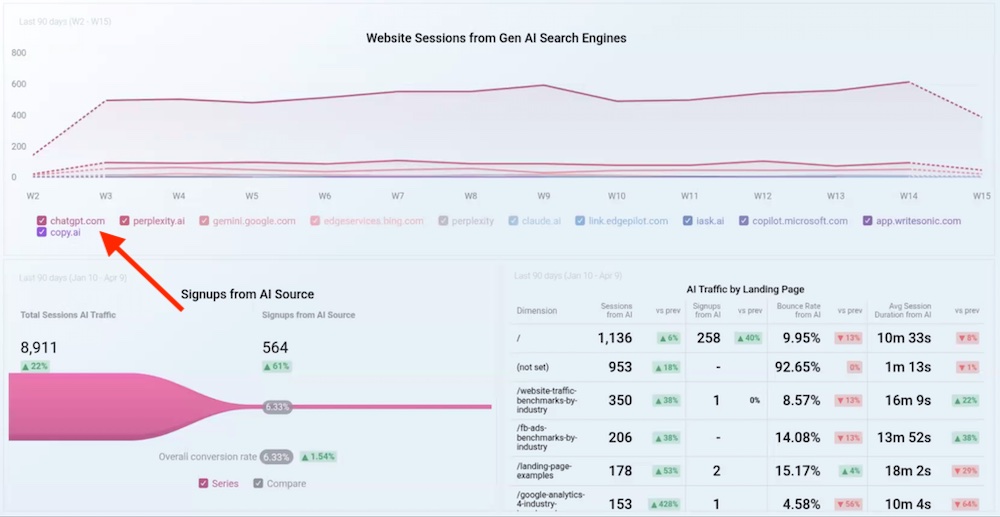 This will filter traffic sources to those containing “gpt” and sort the landing pages by the most clicks from ChatGPT.
