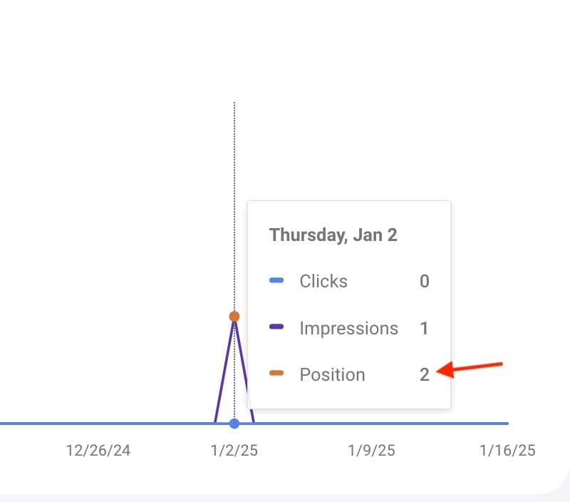 By default, rankings do not show in Search Console’s “Performance” reports. To enable, click the “Average position” option on top of the Performance graph. Once checked, see your site’s position for each search query.