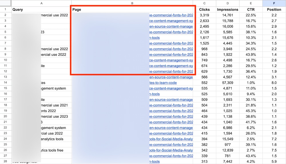 Search Console can directly export data to Google Sheets, including the average positions and clicks for a given period. Unfortunately, the exports are not particularly useful as they do not include the URLs that rank for those queries.