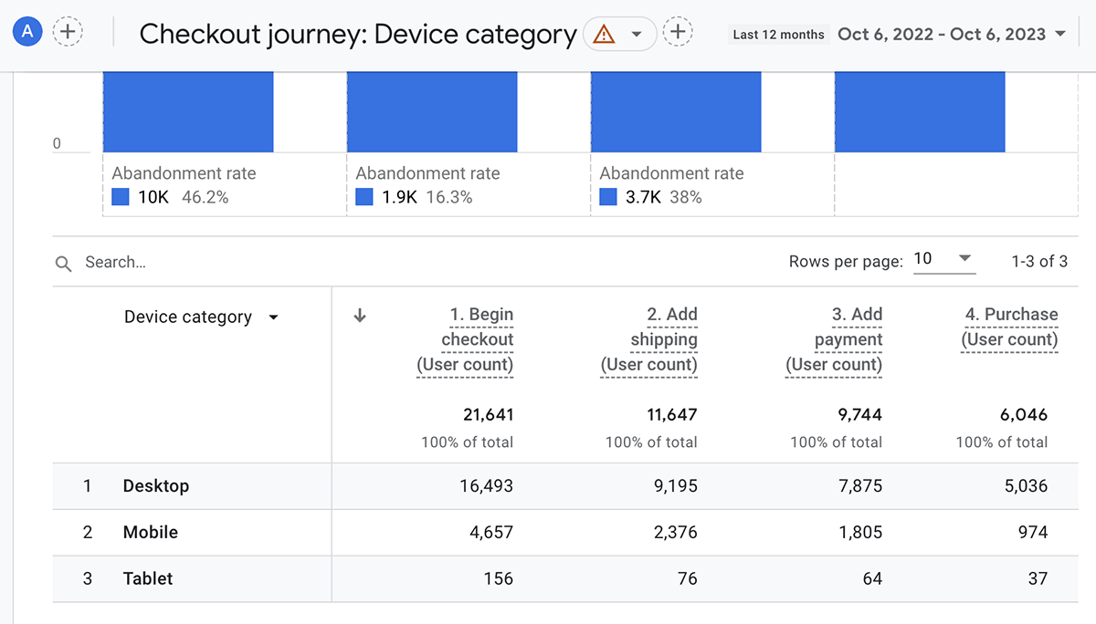 The report can identify bottlenecks or issues in the checkout flow. For example, a business with a massive drop-off after the shipping step could have a technical or pricing problem with the available delivery options.