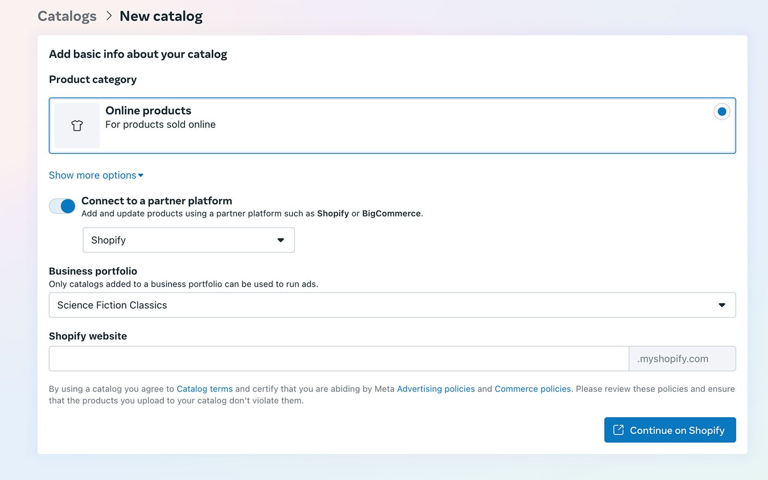 Facebook Shop integrates directly with Shopify, BigCommerce, WooCommerce, and other stores. I will use Shopify for this example.