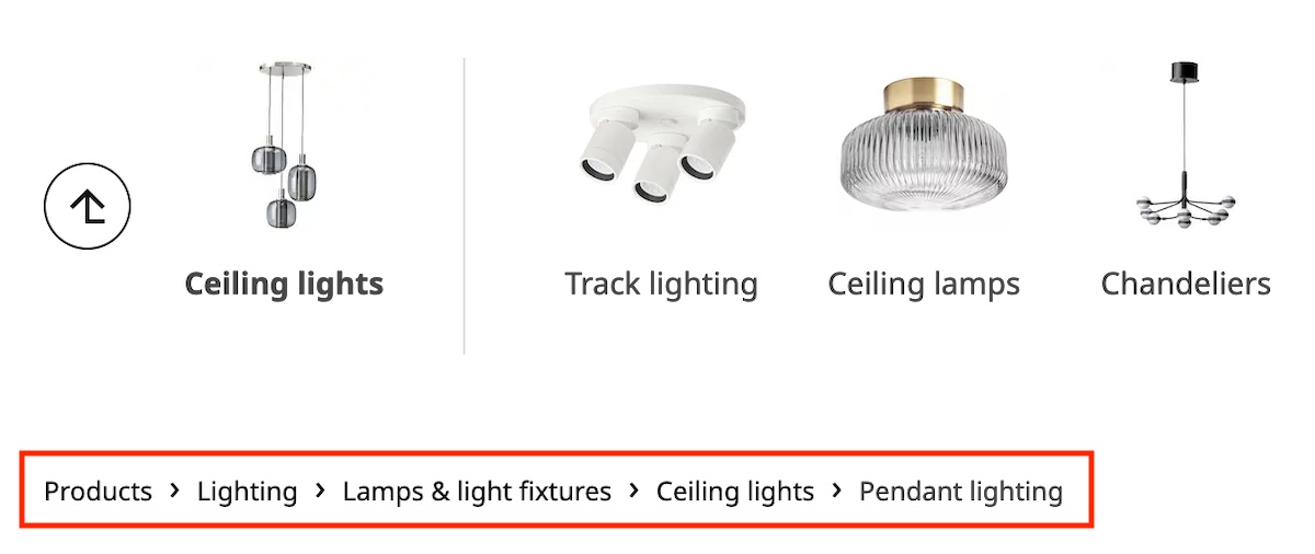 Ikea, for example, has detailed breadcrumb navigation on its product category pages.