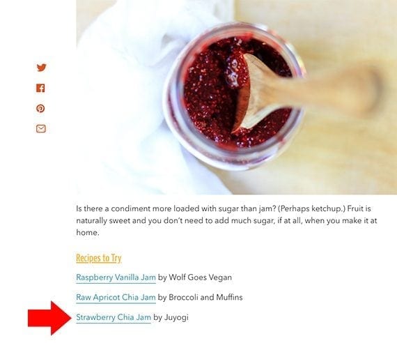 The third link in this list is the broken link. If we can create a great strawberry chia jam recipe of our own, we might be able to get this link.