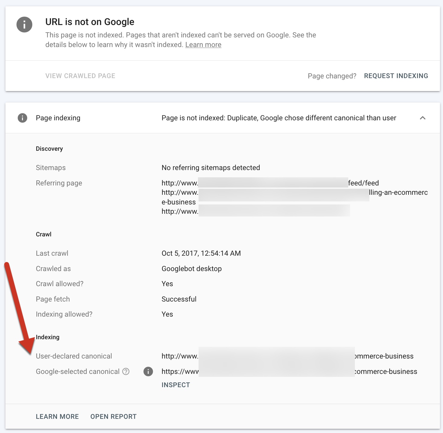 Google reports in Search Console when it overrides a canonical tag and explains why. Click image to enlarge.