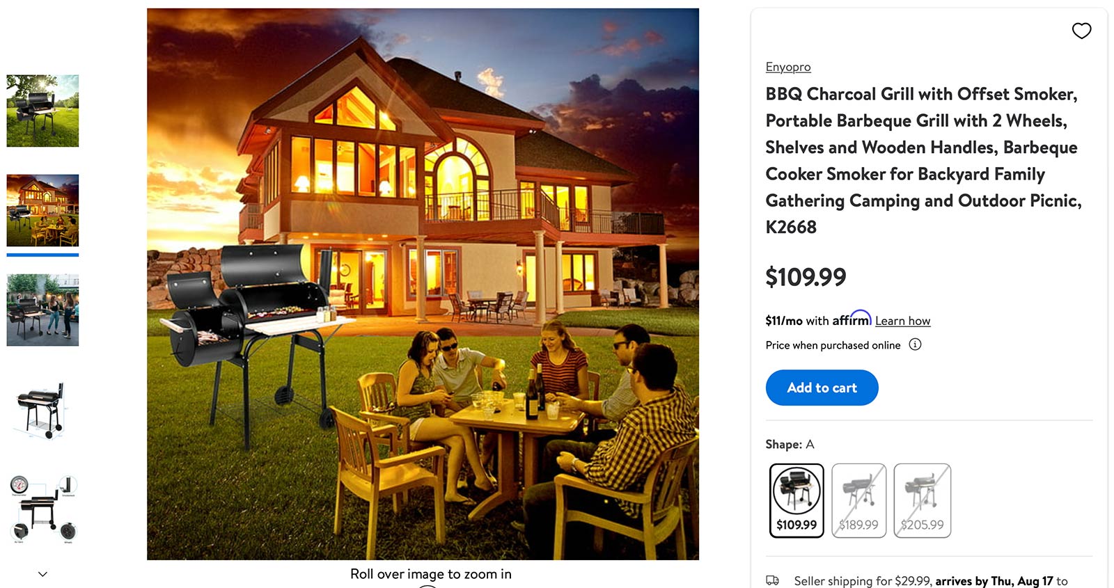 Hence product photos and videos should include common settings. For example, a picture of a gas grill in a backyard is more informative with a background of standard-sized doors and windows. Including people standing next to the grill helps — an entire family of adults and children is even better.