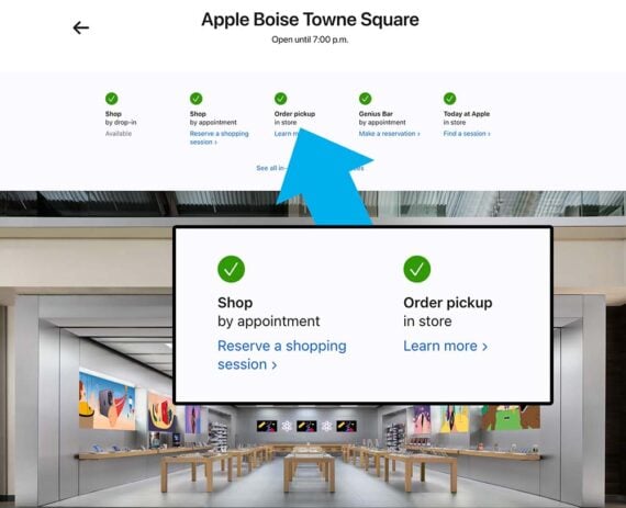 Apple’s online store displays click-and-collect options on its physical location finder page.
