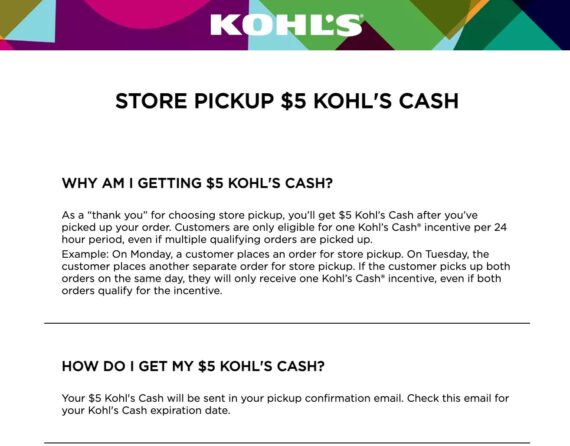 Kohl’s offers shoppers $5 worth of Kohl’s cash when they pick up in-store.