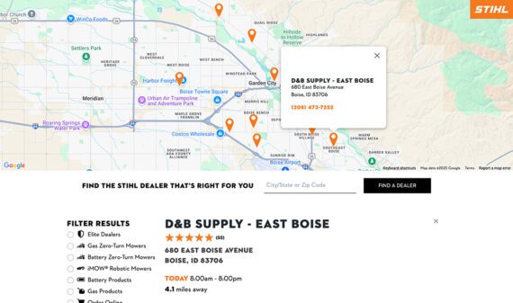 Stihl lets shoppers buy on its site and pick up from a dealer.